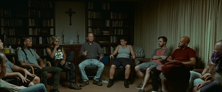 Przez większość czasu jesteśmy z Rubenem (fenomenalny Riz Ahmed) w ośrodku prowadzonym przez głuchego Joe (wspaniały Paul Raci). Wtedy wchodzimy do miejsca, gdzie ludzie głusi funkcjonują razem. Bez poczucia bycia kimś gorszym, uczącym się migowego języka, niejako odcięci od wewnętrznego świata (bez dostępu do telefonu), tworzący własny świat. Cisza jest tutaj bardzo głośna, pokazując to miejsce z dużą dawką empatii. Początkowo sceny z językiem migowym dezorientują – z powodu braku tłumaczenia – z czasem zaczynamy je poznawać. A także te postacie zaczynamy bliżej poznawać. Jednak największe wrażenie zrobiły na mnie sceny, gdy wchodzimy w „uszy” naszego bohatera. Dźwiękowcy świetnie przedstawiają jak odbierane są dźwięki przez osobę z uszkodzonymi uszami. To jest wręcz namacalne i pomaga zrozumieć bohatera, jego ból, bezsilność oraz czasem ośli upór. Ahmed pokazuje to niesamowicie, ale i bardzo naturalnie. Tak się tworzy role oszczędne o potężnej sile rażenia.