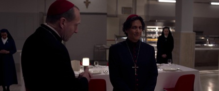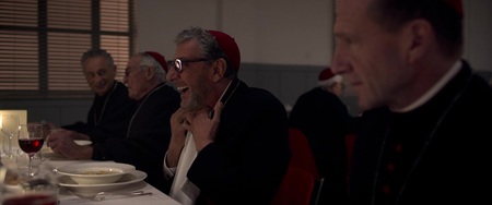 Jest tu zaskakująco sporo momentów kontemplacji i wyciszenia, których wielu się nie spodziewałem. Co nie znaczy, że Berger zapomina o napięciu. Niemal pod koniec mamy – dosłownie i w przenośni – bombę, która zmienia wiele. Jednak największą niespodziankę dostajemy pod sam koniec, ale nie zamierzam jej zdradzać. A wszystko jest fantastycznie zagrane. Bardzo stonowany i wyciszony Ralph Fiennes w roli Lawrence’a jest znakomity, pokazując jego zagubienie oraz jednocześnie determinację, silną wolę. Równie wyraziści są Stanley Tucci jako Bellini, wspomniany wcześniej Castelitto i John Lithgow (śliski kardynał Tremblay).