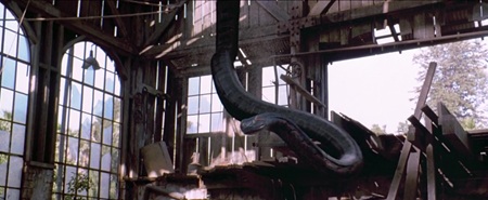 Wszystko jest tu proste, a reżyser Luis Llosa wydaje się być świadomym tego, co robi. Postacie w zasadzie są proste, płaskie i papierowe – naukowiec w stroju Indiany Jonesa, czarnoskóry dobrze posługujący się nożem, Brytyjczyk z wyższych sfer nie odnajdujący się w tym otoczeniu. No i jeszcze tajemniczy przybysz – niby z Paragwaju, ale akcent jest zupełnie z zupełnie innej strony galaktyki, jest kompletnie przerysowana, w zasadzie niejako kradnący ekran bardziej niż anakonda. Dialogi w zasadzie są, ale ich brak nic specjalnie by zmienił. Z kolei sam wąż jest… straszny. I nie chodzi o to, że budzi grozę, ale efekty komputerowe nie zestarzały się zbyt dobrze. Gad wygląda jakby był z gumy i nie budzi przerażenia, za to jest bardzo długi, a nawet potrafi złapać swoją ofiarę w locie. Dosłownie i w przenośni.