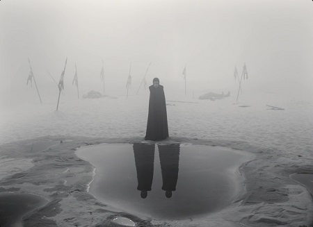 Bo zawsze musi być jakieś ale. Dla mnie problemem była kompletna obojętność wobec tego, co się dzieje na ekranie. Zdarzały się przebłyski interesujących momentów (finałowe szaleństwo lady Makbet, gdzie w nocy idzie do fontanny, zabójstwo Banka czy każda obecność wiedźm), jednak przez większość czasu czułem się jakbym patrzył przez szybę. Nie dlatego, że jest to źle zagrane, bo tak nie jest. Duet Washington/McDormand potrafi bardzo przekonująco pokazać skrywany strach, dumę oraz szaleństwo. Dla mnie absolutnie magnetyzująca jest Kathryn Hunter jako wiedźma. Niby jest jedna, a tak naprawdę są trzy i to, co robi głosem oraz ciałem jest nieprawdopodobne. Płynnie przechodzi z jednego tonu w drugi, początkowo sprawiając wrażenie obcowania z wariatką. To wszystko jednak okazuje się tylko pozorami.