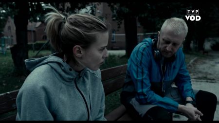 Aktorstwo jest tutaj na granicy przerysowania, jednak tutaj sprawdza się co najmniej solidnie. Nawet jeśli jest przejaskrawione (zwłaszcza w przypadku Katarzyny Gałązki), jest ono bardzo celową zagrywką. Najjaśniejszym punktem jest tu zdecydowanie Sebastian Dela jako Tomek. Trochę cwaniak, trochę cynik zbyt mocno znający reguły świata. Jako chłopak z nizin nie ma zbyt dużych perspektyw, zaś jego determinacja w rozwiązaniu tajemnicy pakuje go czasem w tarapaty. Staje się ona wręcz obsesją, dzięki której kibicowałem mu do końca. Równie wyrazista jest Mila Jankowska – zbuntowana Paola, która chodzi swoją drogą i ma gdzieś swoją przebogatą rodzinę, zaś jej relacja z przypadkowo poznanym Tomkiem jest jedną z ciekawszych na naszym podwórku. A co mogę powiedzieć o Helenie Englert, czyli Alicji? To jest dla mnie pozytywna niespodzianka, gdzie lawiruje między zagubioną i niepewną, a coraz bardziej nieufną, podejrzliwą wobec przyjaciół. Łatwo można było tutaj przesadzić w którąś ze stron, jednak aktorce bardzo dobrze udało się zachować tą potrzebną równowagę, co czyni ją niełatwą do rozgryzienia. Z kolei dorośli w zasadzie po prostu są, choć strasznie niewykorzystani (szczególnie Jowita Budnik jako inspektor policji czy Marieta Żukowska jako matka Alicji).