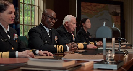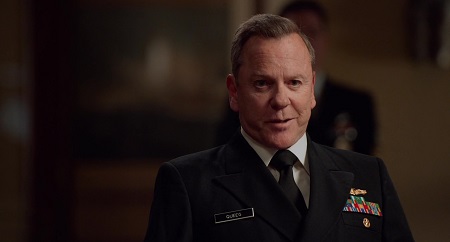 Tak mięsiste kino potrzebuje też krwistych ról, a Friedkin zazwyczaj miał dobrą rękę do aktorów. Nie inaczej jest w „Buncie…”, gdzie są co najmniej dwie genialne kreacje. Po pierwsze – absolutnie zaskakujący Kiefer Sutherland w roli kapitana Queega. To bardzo neurotyczny oficer, który ma za sobą bardzo silne i poważne przejścia. Co bardzo czuć w sposobie mówienia, chwilach zacięcia, powtarzania się czy nagłego „zapominania”. Aktor pojawia się w dwóch scenach przesłuchania i całkowicie dominuje ekran swoją obecnością, zaś ostatnie momenty w jego wykonaniu to majstersztyk. Takiego Sutherlanda nie widziałem nigdy. Równie rewelacyjny jest Jason Clarke w roli obrońcy Greenwalda, który początkowo sprawia wrażenie niechętnego obrony (do czego sam się przyznaje). Ale im dalej w las, w tym bardziej opanowany, wręcz metodyczny sposób podchodzi do sprawy. Zadaje bardzo zasadne i sensowne pytania, nabierając coraz większej siły, ale najmocniejszą rzecz rzuca w samym finale, już po procesie. Mogę z czystym sumieniem powiedzieć, że to jego najlepsza rola w karierze i ogląda go sprawia czystą przyjemność. Tak samo fantastyczny jest Jake Lacy (porucznik Maryk), energiczna Monica Raymund (prokurator Challee) czy pełen siły oraz charyzmy Lance Reddick (kapitan Blakely, przewodniczący składu sędziowskiego) w swojej ostatniej roli.