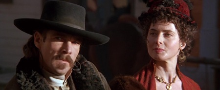 A to dopiero początek długiej epopei, która obejmuje m. in. obdzieranie skór z bizonów, zastępcy szeryfa, posiadanie kasyna, wreszcie Earp jako szeryf w Dodge City oraz Tombstone. O przyjaźni z Dokiem Hollidayem (Dennis Quaid) nawet nie muszę wspominać. Ten trzygodzinny fresk pozwala sobie na wiele momentów wyciszenia oraz skupienia się na samym Wyacie i jego drodze do sławnego stróża prawa, co się nie cackał z nikim. Problem w tym, że cała ta opowieść strasznie się dłuży i ciągnie niczym rozgotowany makaron. Przewija się masa postaci na drugim planie, która pojawiają się i znikają (czasem na bardzo długo), samej akcji jest tu jak na lekarstwo oraz jest nie angażująca (może poza sekwencją z pociągiem). Zupełnie jakby Kasdanowi zabrakło skupienia i próbował upchnąć jak najwięcej w jak najkrótszym czasie. Co by tłumaczyło dlaczego „Wyatt Earp” pierwotnie miał być 6-godzinnym miniserialem i w takiej formie prawdopodobnie by się sprawdził.