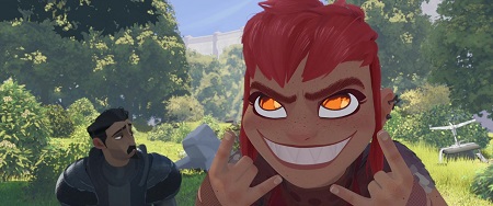 Sam film w zasadzie jest prostą historią, której największym sercem jest relacja dwójki outsiderów. Ballister mimo woli zostaje oskarżony, ale broni się przed nieczystą walką, pozostaje przez większość akcji idealistą. Nadal wierzy w honor, lojalność oraz siłę systemu. Nimona jest całkowitym kontrastem – zbuntowana nastolatka, z bardzo punkowym nastawieniem, wściekłością, gniewem. I jeszcze jest… zmiennokształtna, co daje animatorom duże pole do popisu. Ta kontrastowa para oraz zmieniająca się ich dynamika jest emocjonalnym paliwem, co także jest zasługą świetnego dubbingu. Przy okazji powoli odkrywamy przeszłość bohaterki i przyczynę jej nastawienia wobec świata. Bardzo kreatywnego świata mieszającego zaawansowaną technologię czasów naszych ze średniowiecznymi rycerzami i ich zasadami. Powinno się to gryźć ze sobą, ale kompletnie tak się nie dzieje.