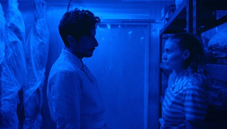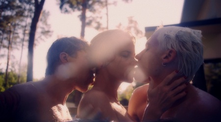 Sam zarys fabuły sugeruje, że będziemy mieli do czynienia z filmem o trudnych relacjach, z silnym zabarwieniem erotycznym i nawet odrobiną napięcia. Tylko, że to nie do końca prawda. Nie jest to dreszczowiec z krwi i kości, bo wszystko wydaje się być zbyt umowne i zbyt wystylizowane. Od podziału na rozdziały (sztuk pięć) przez bardzo mocną kolorystykę (dominujący fioletowy filtr czy mocny błękit wody) aż po zadziwiająco sporo humoru. Grzegorzek bawi się oczekiwaniami, cały czas podrzucając kolejne momenty i sytuacje, niepozbawionych wieloznaczności. Tak jak bardzo niejednoznaczna jest dynamika między trójką postaci, gdzie miłość, obsesja, zazdrość i pożądanie mieszają się ze sobą.