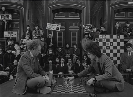 „Fenicki układ” pozornie jest taki sam jak zawsze. Nadal mamy mocne, pastelowe kolory, symetryczne kadry i specyficzną pracę kamery czy bogatą w detale scenografię. Jednak tutaj Anderson nie wali wątkami jak szalony, nie tworzy opowieści w opowieści, tylko w całości skupia się na trójce postaci oraz ich dynamice. A jednocześnie mamy całą tą kombinację związaną z tytułowym układem oraz „Wyrwą”, czyli dołożeniem troszkę piniądzorów do tej inwestycji. Próby negocjacji, gdzie tak naprawdę sporo zależy od szczęścia i zbiegów okoliczności potrafią rozbawić, zaskoczyć, a nawet zadziwić kreatywnością (jak rozwiązanie sporu przez… grę w koszykówkę czy nagłe wkroczenie grupy terrorystycznej). Jednak tak naprawdę mamy zderzenie dwóch światów: religijnej, głęboko wierzącej, idealistycznej Liesl z bezwzględnym, wyrachowanym kapitalistą Kordą. Jeszcze bardziej widać tą konfrontację w czarno-białych, surrealistycznych scenach osadzonych w zaświatach. Więc czy wygra interes czy może więzy rodzinne?